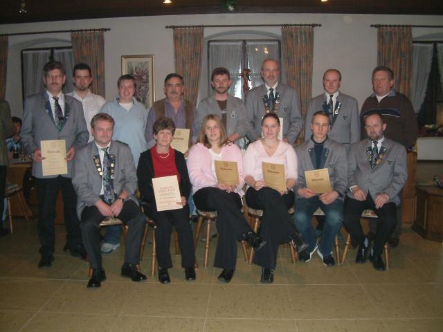 und die Schützenmeister Nadler und Hofmannn (vorne links bzw. rechts)