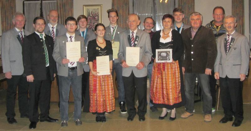 Die geehrten langjährigen und verdienten Mitglieder sowie Vereins- und Gaumeister
